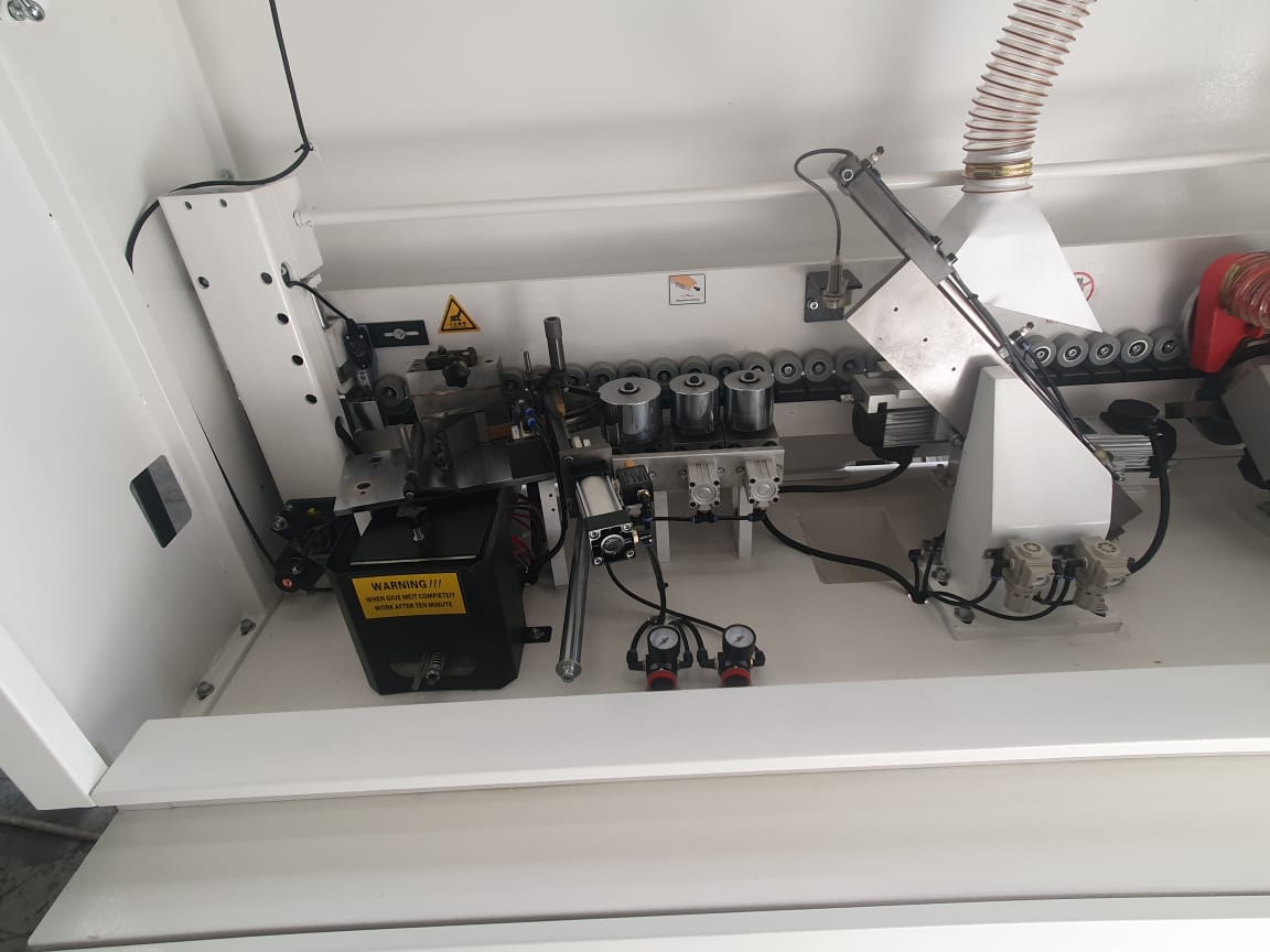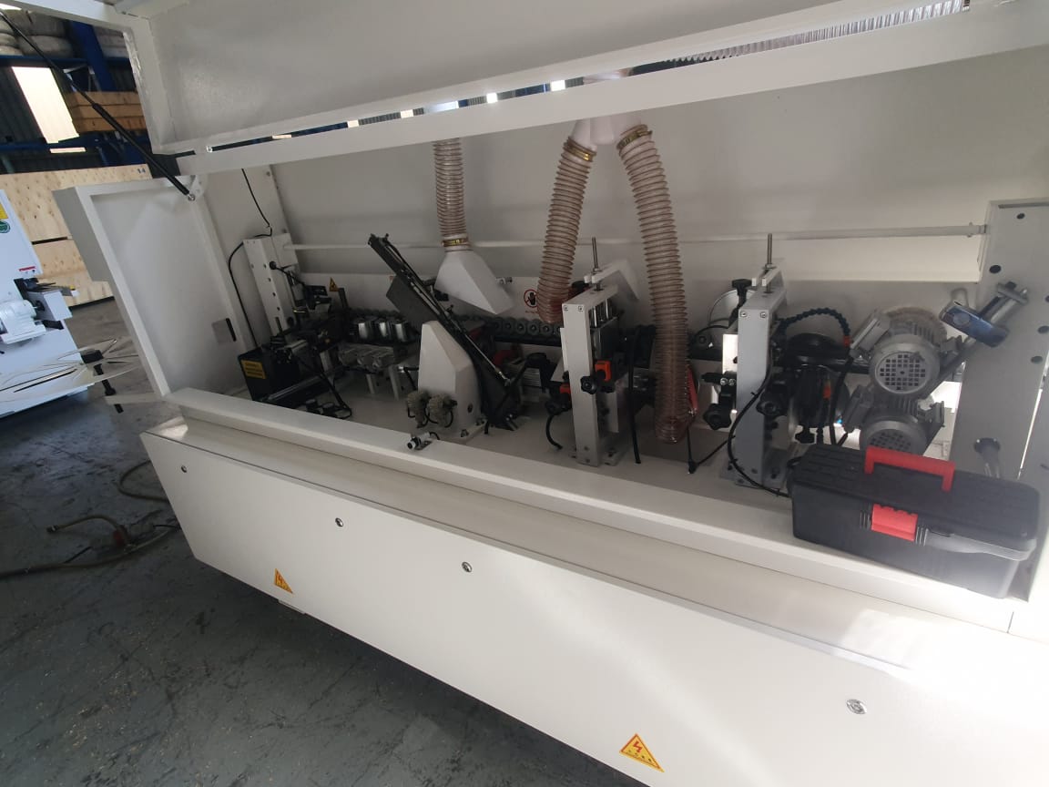 | This model is the Big Boy of entry level Edge Banders running at 15 meter per min. It has 2 saws for front and back trimming, top and bottom radius trimming with analogue readout, high frequency motors, radius scrappers and buffers. A Teflon coated glue pot that heats faster and is easy to clean! Includes Centralized lubrication. This machine is easy to set up, is fast, smooth and reliable. | ||